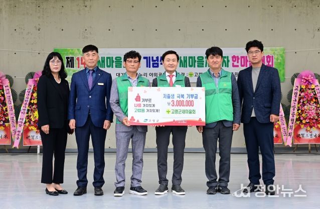 정안뉴스 안정주 기자 | 고령군 새마을회에서 4월 30일 대가야문화누리 야외공연장에서 열린 제14회'새마을의 날 기념식 및 새마을지도자 한마음대회'에서 지역의 저출생 극복을 위한 성금 300만원을 기탁했다. 고령군 새마을회는 새마을운동의 기본정신인 근면·자조·협동을 바탕으로 물질적·정신적으로 풍요롭고 건강한 사회를 조성하고 화합과 번영의 자랑스러운 나라를 건설하는데 이바지 하고 있다.