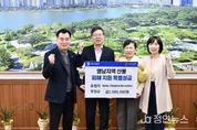 정안뉴스 기자 | 포천시 선단동은 지난 2일 ‘좋은사람모임’이 영남지역 산불 피해 복구를 위한 성금 1,133만 원을 기탁했다고 전했다. 이번 성금은 선단동 소재 ㈜우림관 대표 이백훈을 비롯한 좋은사람모임 50여 명이 자발적으로 마련한 것으로, 사회복지공동모금회 ‘2025 영남지역 산불 피해지원 특별모금’을 통해 전달될 예정이다. 좋은사람모임을 대표한 이백훈 대표는 “산불 피해 지역의 이재민들이 하루 빨리 일상으로 돌아갈 수 있도록 돕고자 했다”며, “작은 정성이 피해 주민들에게 큰 힘이 되길 바란다”고 말했다. 이계향 선단동장은 “어려운 시기에 나눔을 실천해 주신 좋은사람모임에 깊은 감사의 말씀을 전한다”며, “전달한 성금이 피해 지역 주민들의 신속한 일상 회복에 조금이나마 도움이 되길 바란다”고 말했다.