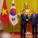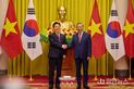 정안뉴스 안정주 기자 | 베트남을 국빈 방문한 이재명 대통령은 22일(현지시간) "양국은 2030년까지 교역 규모 1500억 불 목표 달성을 위해 교역·투자 협력을 더욱 호혜적으로 발전시켜 나가기로 했다"고 밝혔다. 이 대통령은 이날 또 럼 베트남 서기장 겸 국가주석과 하노이에 위치한 주석궁에서 정상회담 후 가진 공동언론발표를 통해 이 같이 말했다. 이 대통령은 발표를 통해 "베트남은 대한민국의 3위 교역·투자국이고, 한국은 베트남의 최대 투자국"라며 "약 1만 개의 한국 기업이 석유화학, 조선, 철강, 전자를 아우르는 전 분야에 진출해 높은 수준의 경제 연대를 이루고 있다"고 협력 관계를 강조했다. 또 "한국은 베트남의 '2045년 고소득 선진국 진입' 비전 실현을 위한 최적의 파트너로서, 물류, 교통, 에너지, 인프라와 같은 하드웨어 분야에서부터 과학기술, 지적재산, 창조산업 등 미래 산업 분야까지 전방위적인 협력을 추진하고 있다"고 덧붙였다. 이 대통령은 "이번 정상회담에서 '포괄적 전략 동반자' 협력을 더욱 공고히 하기로 했다"며 회담 주요 성과를 소개했다. 교역·투자