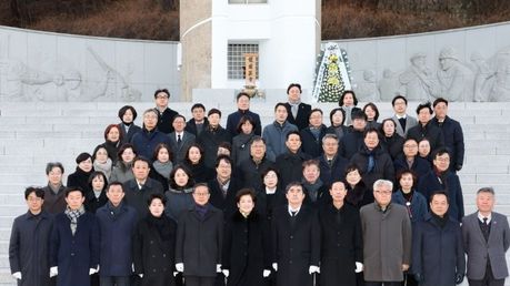 정안뉴스 안정주 기자 | 하남시의회는 2026년 병오년(丙午年)을 맞아 2일 오전 현충탑 신년 참배에 이어 시무식을 열고 새해 의정 비전 실천 의지를 다졌다. 시무식에 앞서 금광연 의장, 정병용 부의장, 정혜영 의회운영위원장, 최훈종 도시건설위원장, 박선미, 오승철, 오지연 의원은 이날 오전 8시 창우동 소재 현충탑 신년 참배하고 국가를 위해 희생‧헌신하신 순국선열과 호국영령의 숭고한 애국정신을 기리며 새해 의정활동의 시작을 알렸다. 이날 시무식에는 의원, 하남시 의정동우회 박순창 회장(제4대 의회 부의장)‧회원, 의회사무국 직원들이 참석한 가운데 새해를 맞아 2026년도 의회 운영 방향을 공유하고 시민을 위한 의회 역할과 책임을 다시 한번 되새기고, 앞으로의 의정활동에 대한 결의를 다졌다. 금광연 의장은 신년사에서 “지난 한 해 동안 하남시의회는 시민의 뜻을 의정의 중심에 두고 쉼 없이 달려왔다”라며 “‘시민과 동행하는 품격 있는 의회’를 향한 우리의 노력은 의미 있는 변화로 이어졌고, 시민 여러분의 신뢰와 응답 그리고 성과는 의원 한 분 한 분의 헌신과 의회사무국 직원 여러분의 노력이 있었기에 가능했다”라며