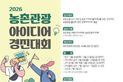 정안뉴스 안정주 기자 | 농림축산식품부와 농촌진흥청은 ‘농촌관광 여행자가 바라본 농촌관광의 미래’란 주제로'2026년 농촌관광 아이디어 경진대회'를 공동으로 개최한다고 밝혔다. '농촌관광 아이디어 경진대회'는 농촌관광 활성화를 위한 창의적인 정책 아이디어를 발굴하고자 개최하는 것으로, 이번 경진대회는 청년층의 참여를 제고하고자 기존 대학(원)생 부문의 참여 대상을 청년으로 확대했다. 농촌관광에 관심 있는 청년과 일반인 누구나(개인 또는 4인 이내 팀) 참여할 수 있으며, 수요자 관점의 문제 해결 아이디어, 여행자 경험 혁신 아이디어, 지역특화자원 연계형 농촌관광 모델, 운영 혁신 방안 등에 대한 아이디어를 제출하면 된다. 경진대회 접수 방법 및 추진 일정 등 자세한 사항은 4월 7일부터 웰촌 포털을 통해서 확인할 수 있으며, 참가를 희망하는 자는 5월 26일부터 5월 31일 18시까지 해당 누리집을 통해 아이디어 제안서를 온라인으로 제출하면 된다. 접수된 아이디어를 대상으로 농촌관광 분야 전문가로 구성된 평가위원회에서 1차 서면평가와 2차 발표평가를 거쳐 최종 수상작을 7월 초에 선정할 계획이며,