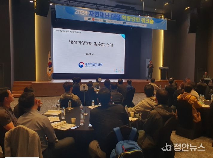 광주시는 15일 신안군 씨원리조트에서 자치구, 유관기관 등 풍수해 재난 업무담당자들을 대상으로 ‘자연재난 대응 역량강화를 위한 특강’을 개최했다.