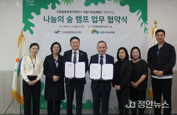 정안뉴스 박상욱 기자 | 광주 광산구 수완동은 15일 국립나주숲체원과 건강한 수완마을 조성을 위한 나눔의 숲 캠프 업무협약을 체결했다고 밝혔다.
