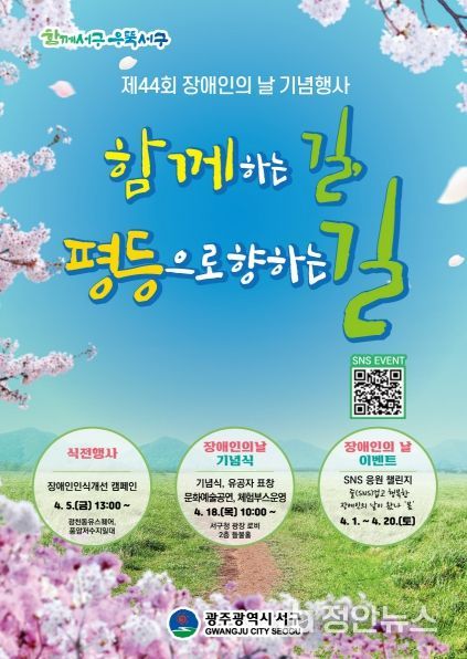 정안뉴스 박상욱 기자 | 광주광역시 서구는 4월 20일 장애인의 날을 앞둔 18일 오후 2시 서구청 들불홀에서 기념식을 개최한다.