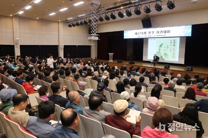 정안뉴스 박상욱 기자 | 광주 동구는 최근 장편소설 ‘황금종이’를 출간한 소설가 조정래 작가를 초청한 ‘제270회 동구아카데미’를 성황리에 마무리했다고 밝혔다.