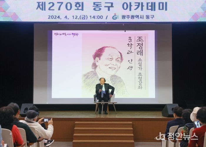 정안뉴스 박상욱 기자 | 광주 동구는 최근 장편소설 ‘황금종이’를 출간한 소설가 조정래 작가를 초청한 ‘제270회 동구아카데미’를 성황리에 마무리했다고 밝혔다.