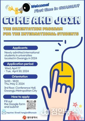 교육은 5월 2일 오후 4시 시청 대회의실에서 ‘어서와, 광주는 처음이지’를 주제로 분야별 전문가들이 ▲광주생활 가이드 ▲광주관광 소개 ▲범죄피해 예방하기 ▲알기 쉬운 출입국관리법 등 유학생 맞춤정보를 제공한다.