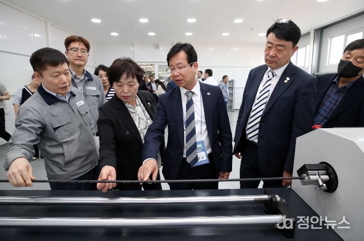 박병규 청장을 비롯한 광산구 경제사절단의 기업인들은 박인철 무송지오씨(주) 대표이사와 함께 공장 시설을 둘러보면서 기업 운영 상황, 현지 진출 과정 등에 대한 설명을 들었다.