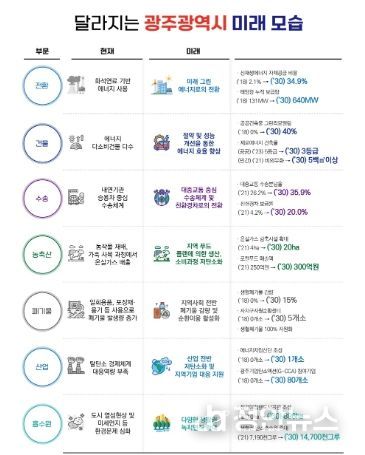 정안뉴스 박상욱 기자 | 광주시가 2033년까지 3조6431억원을 투입해 건축물 녹색설계, 친환경차 전환, 중소기업 온실가스배출 감축 등 탄소중립·녹색성장에 속도를 낸다.