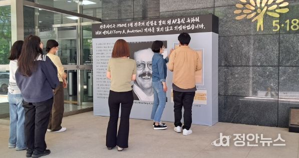 정안뉴스 박상욱 기자 | 5·18민주화운동기록관은 1980년 5월 광주의 진실을 전 세계에 알린 AP통신 전 특파원 고(故) 테리 앤더슨(Terry A. Anderson) 기자를 추모하고 기억하는 공간을 기록관 입구에 마련해 오는 5월1일까지 운영한다.