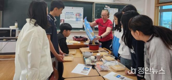 첫 프로그램은 두암중학교를 찾아가 캐나다 원어민과 함께 하는 캐나다 요리 수업이 진행됐다.