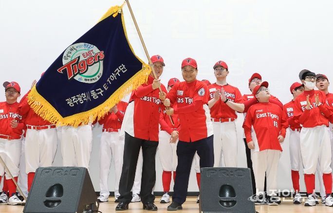 지난 17일 발대식을 연 E.T 야구단은 구단주 임택 구청장, 단장 장세종 동구장애인복지관장, 명예 감독 김성한 전(前) 기아타이거즈 감독 등과 29명의 발달장애 청소년으로 구성됐다.