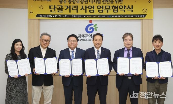 정안뉴스 박상욱 기자 | 광주 동구는 모바일 라이프 플랫폼 기업 카카오와 25일 ‘지역상권활성화를 위한 단골거리 디지털전환 사업’에 관한 업무협약을 체결했다고 밝혔다.