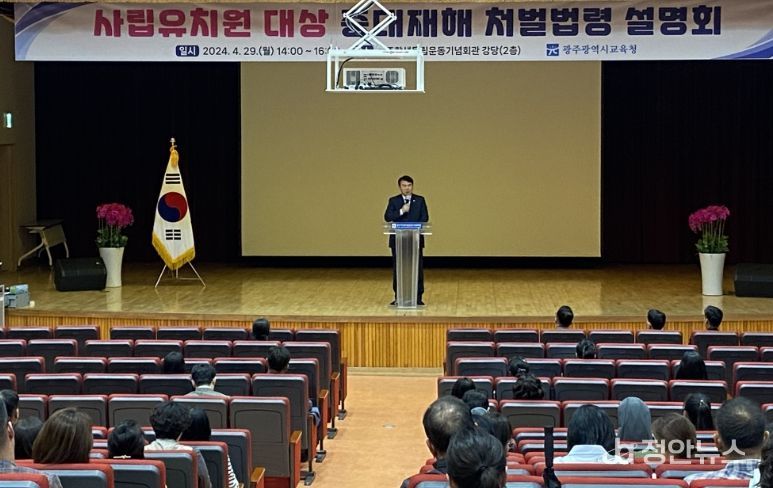 정안뉴스 박상욱 기자 | 광주시교육청이 29일 관내 130개 사립유치원을 대상으로 중대재해 처벌 법령 설명회를 개최했다.