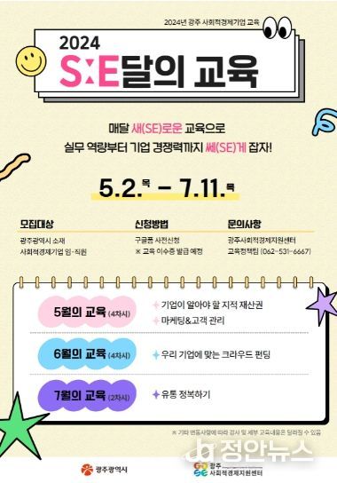 정안뉴스 박상욱 기자 | 광주광역시는 지역 사회적경제기업의 경쟁력을 강화하고 지속가능성을 높이기 위해 사회적경제기업 임·직원을 대상으로 오는 5월 2일부터 교육 프로그램을 운영한다.