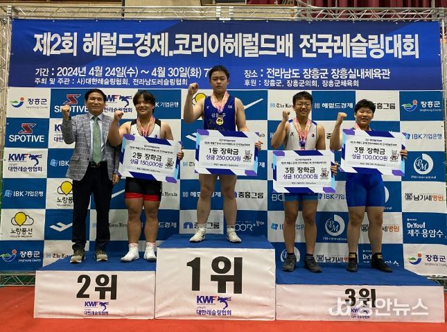 정안뉴스 박상욱 기자 | 광주체육중학교가 지난 25일부터 4일간 전남 장흥에서 개최된 ‘제2회 헤럴드 경제 코리아헤럴드 배 전국 레슬링대회’에서 금4, 은 2, 동 2개를 획득하는 쾌거를 달성했다.