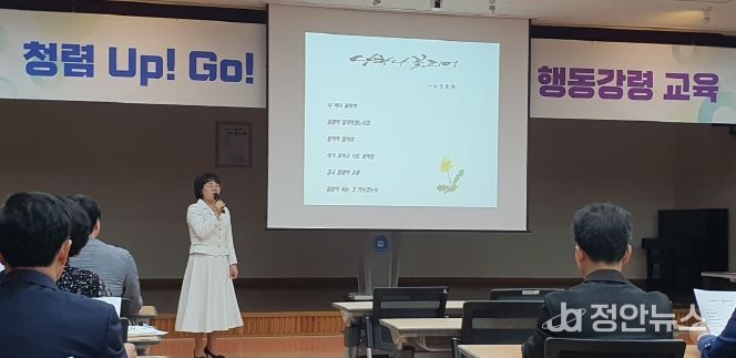정안뉴스 박상욱 기자 | 광주동부교육지원청이 지난 5월 1일 지원청 대강당에서 ‘직원과 함께하는 이달의 청렴 시(時) 낭송’과 ‘청렴 UP! GO! 갑질 예방 및 공무원 행동강령’ 청렴교육을 실시했다.