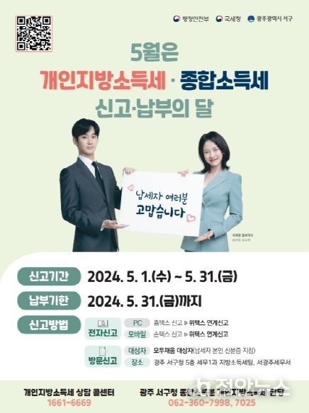 정안뉴스 박상욱 기자 | 광주광역시 서구는 소득세 확정신고에 대비해 종합소득세와 개인지방소득세를 함께 신고할 수 있는 ‘종합소득세·개인지방소득세 신고창구’를 운영한다.