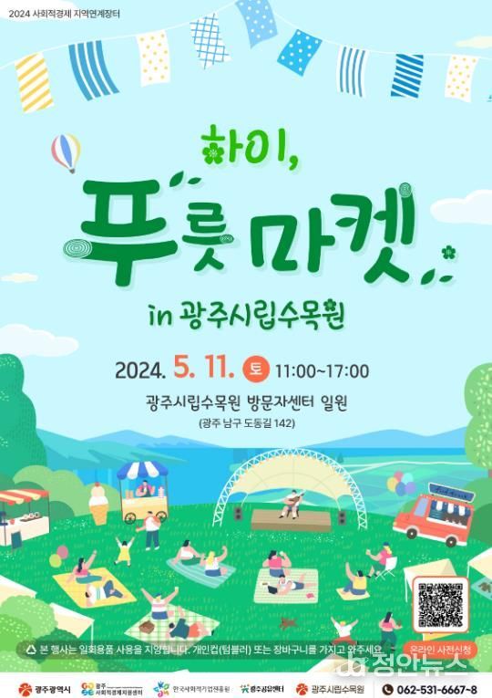 광주광역시는 광주사회적경제지원센터·한국사회적기업진흥원·광주공유센터·광주시립수목원이 함께 하는 ‘하이, 푸릇 마켓 in 광주시립수목원’ 행사를 11일 시립수목원 방문자센터 일원(광주 남구 도동길142)에서 연다.