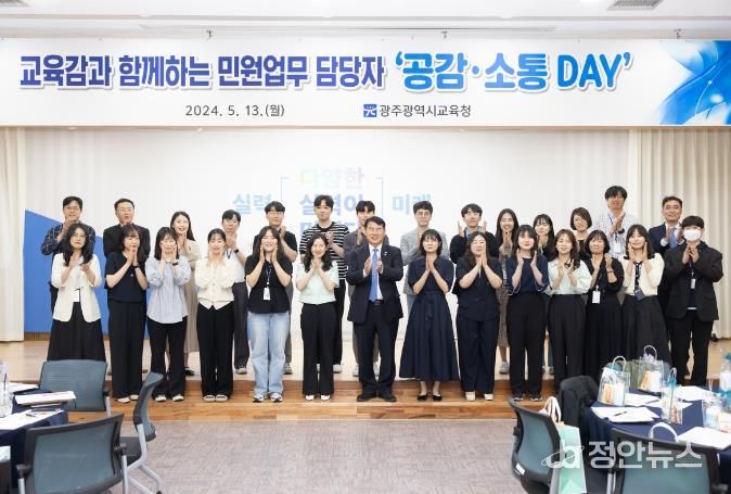 정안뉴스 박상욱 기자 | 광주시교육청이 13일 시교육청 대회의실에서 본청을 비롯해 동·서부교육지원청 민원업무 담당자를 대상으로 ‘교육감과의 간담회’를 가졌다.