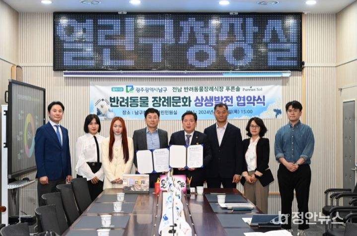 남구는 최근 관내 반려인의 동물화장 민원을 해소하고, 성숙한 반려 문화 조성을 위해 전남의 한 반려동물 장례식장인 푸른솔과 상생 발전 협약을 체결했다.
