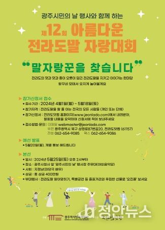 정안뉴스 박상욱 기자 | 광주역사민속박물관은 월간 전라도닷컴과 함께 25일 오후 2시부터 광주시청 야외음악당에서 ‘제12회 아름다운 전라도말 자랑대회’를 연다.