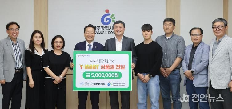 정안뉴스 박상욱 기자 | 광주 동구는 22일 와이마트 부설 사단법인 피플위드피플(이사장 김성진)에서 구청을 방문해 돌봄 이웃 지원을 위한 와이마트 상품권 5백만 원을 전달했다고 밝혔다.