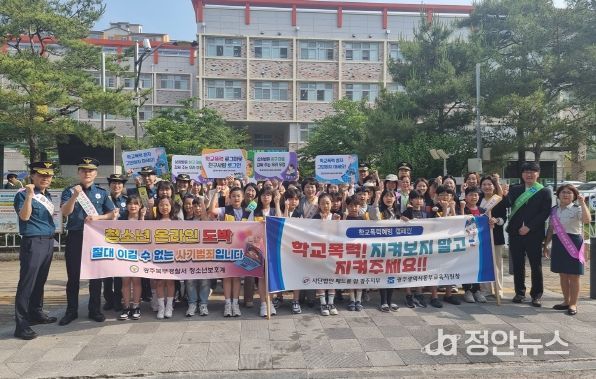 정안뉴스 박상욱 기자 | 광주동부교육지원청이 22일 건국초등학교에서 지역사회 유관기관과 함께 ‘찾아가는 학교폭력예방 캠페인’을 실시했다고 밝혔다.