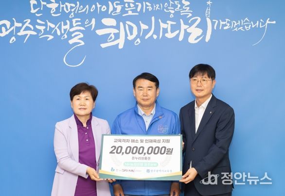 정안뉴스 박상욱 기자 | 광주희망사다리교육재단이 23일 이정선 교육감을 비롯해 최영순 재단 상임이사, 박내춘 농협은행 광주본부장과 농협 관계자가 참석한 가운데 NH농협은행 광주본부로부터 기부금 2천만을 전달받았다.