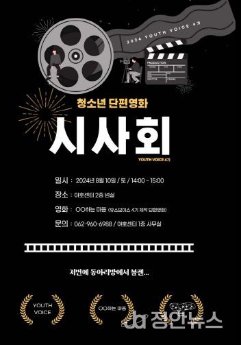 정안뉴스 박상욱 기자 | 광주 광산구는 청소년들의 자전적 이야기를 담은 영화 제작 프로젝트 ‘Youth Voice’ 시사회가 오는 10일 월곡동 청소년문화의집 야호센터에서 열린다고 밝혔다.