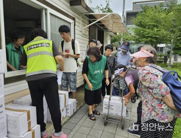 정안뉴스 박상욱 기자 | 의왕시 기초푸드뱅크는 지난달 31일부터 8월 7일까지 이마트 ‘신선한 식탁’ 사업의 친환경 농산물 꾸러미를 배분했다.