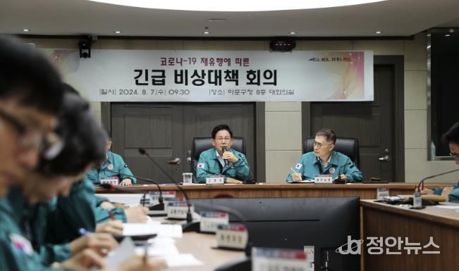 정안뉴스 박상욱 기자 | 박강수 마포구청장은 7일 오전, 마포구청 대회의실에서 코로나19 감염병 재유행에 따른 긴급 비상대책 회의를 열었다.