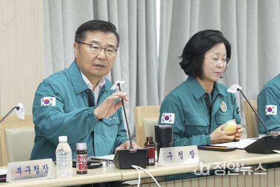 회의를 주재한 류경기 구청장은 구민 피해 상황이 없는지 면밀히 살피고 무더위쉼터 등 각종 폭염 저감시설물 운영사항을 점검하며 철저한 대비를 당부했다. 특히, 취약계층 보호와 응급 대응체계 구축에 만전을 기할 것을 지시했다.