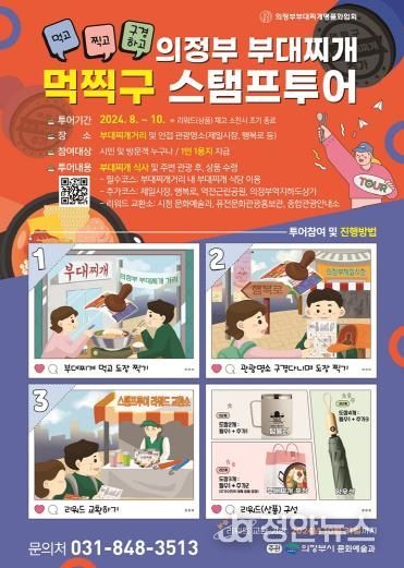 정안뉴스 박상욱 기자 | 의정부시는 8월 12일부터 부대찌개거리 일원에서 ‘의정부 부대찌개 먹찍구(먹고 찍고 구경하고) 스탬프투어’를 시작한다.