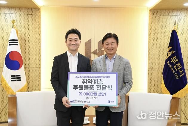 정안뉴스 박상욱 기자 | 부천시는 사회적기업 ㈜위드플러스시스템이 지난 7일 부천시청 만남실에서 취약계층을 위한 라면선물세트 6,000박스를 전달했다고 밝혔다.