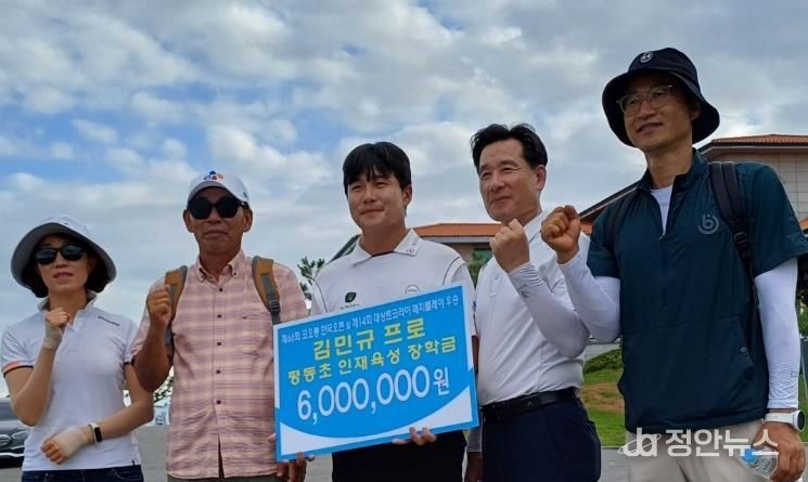 정안뉴스 박상욱 기자 | 한국남자프로골프(KPGA) 투어에서 활약하고 있는 프로골퍼 김민규 선수가 7일 모교인 평동초등학교에 인재육성 장학금을 전달했다.