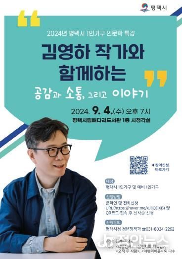 정안뉴스 박상욱 기자 | 평택시는 오는 9월 4일 오후 7시에 배다리도서관 1층 시청각실에서 1인 가구를 위한 인문학 특강을 개최한다고 밝혔다.