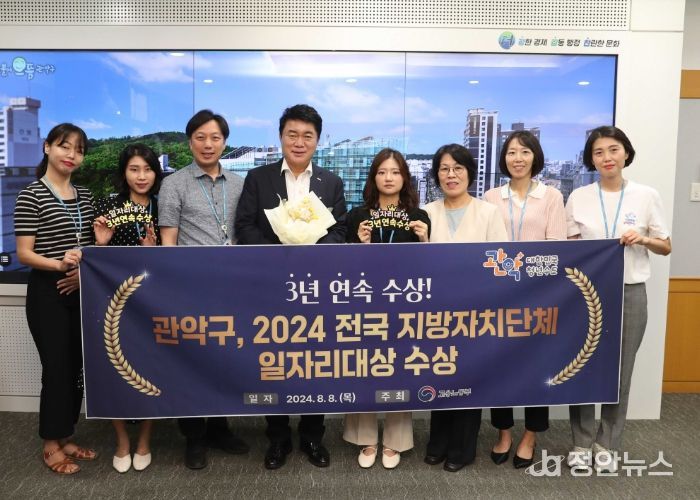 정안뉴스 박상욱 기자 | 관악구가 8월 8일 고용노동부가 주관하는 ‘2024년 전국 지방자치단체 일자리 대상’에서 3년 연속 수상하는 영예를 안았다.