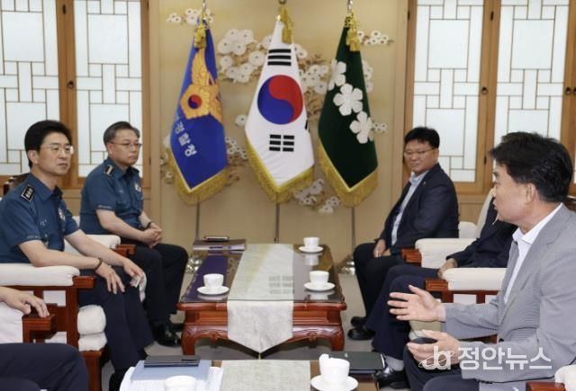 정안뉴스 박상욱 기자 | 하은호 군포시장은 8월 8일(목) 15시 경기남부경찰청장과 면담을 갖고 대야파출소 조직 개편에 대한 반대의견과 주민 요구사항을 전달하였다.