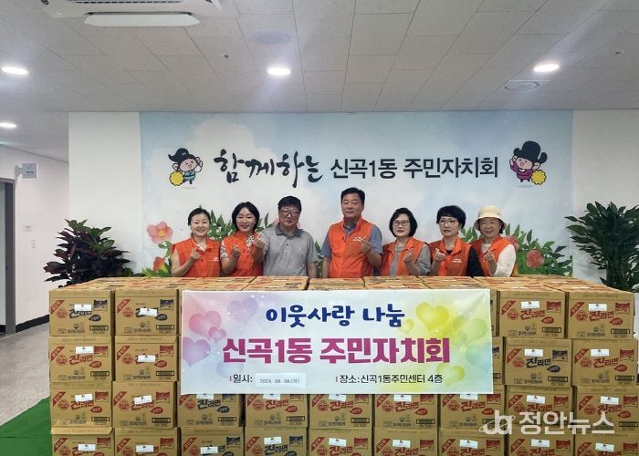 정안뉴스 박상욱 기자 | 의정부시 신곡1동주민센터는 8월 8일 신곡1동 주민자치회가 취약계층에게 전달해 달라며 라면 50상자를 기부했다고 밝혔다.