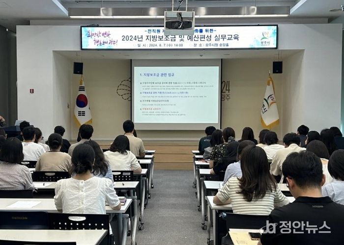 정안뉴스 박상욱 기자 | 광주시는 지난 7일 시청 순암홀에서 지방보조금 담당자 및 예산·회계 분야 담당자 150여 명을 대상으로 ‘2024년 지방보조금 및 예산편성 실무교육’을 실시했다.