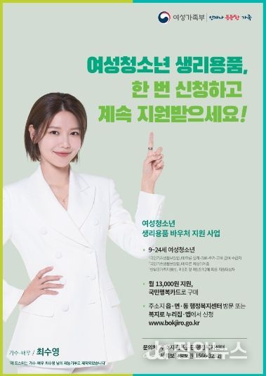 정안뉴스 박상욱 기자 | 동두천시는 2024년 ‘여성청소년 보건위생용품 바우처 지원’과 관련해 관내 여성 청소년들의 건강한 성장 지원에 나선다.
