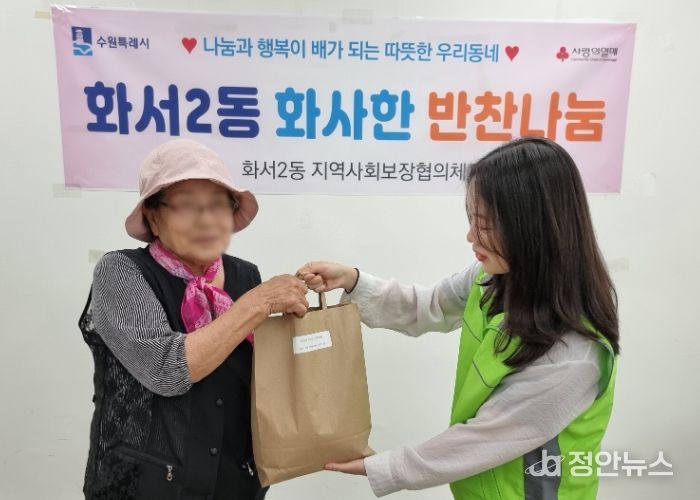 정안뉴스 박상욱 기자 | 수원시 팔달구 화서2동 지역사회보장협의체는 지난 8일 마을의 저소득 홀몸 어르신 15명을 모시고 무더위에 지친 입맛을 돋울 ‘화사한 반찬 나눔’ 행사를 실시했다.