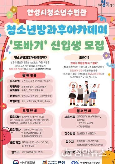사업 참여 신청은 안성시청소년수련관(3층 방과후아카데미사무실)을 직접 방문하거나, 정부24 온종일 돌봄 시스템을 통해 할 수 있다.