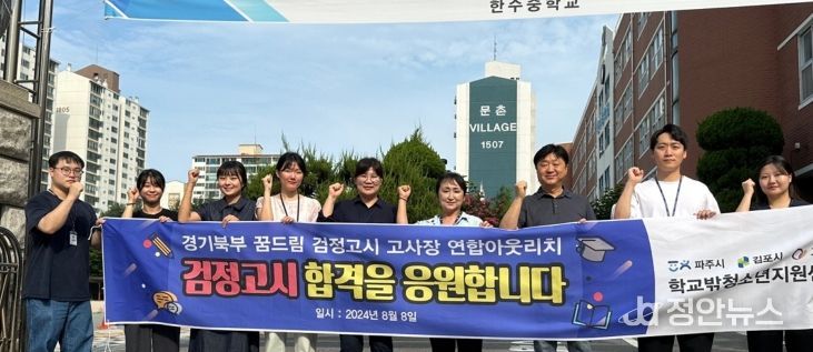 정안뉴스 박상욱 기자 | (재)김포시청소년재단 학교밖청소년지원센터에서는 8월 8일 제 2회 검정고시가 진행되는 고양시 일대 고사장(화정, 한수중, 백신고)에서 아웃리치를 실시했다.