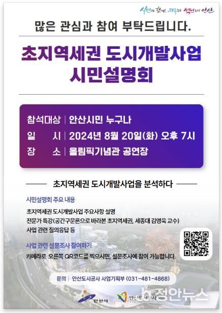 안산도시공사는 오는 20일 오후 7시 안산 올림픽기념관 공연장에서 초지역세권 도시개발사업 시민설명회를 개최한다고 12일 밝혔다.