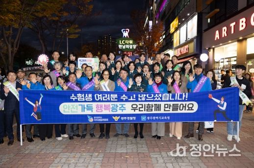정안뉴스 기자 | 이정선 교육감은 수능 당일인 지난 14일 오후 6~7시 첨단 LC타워 일대에서 수능을 마친 수험생, 학생, 시민을 대상으로 ‘청소년 비행 및 학교 폭력 예방을 위한 캠페인’을 전개했다.