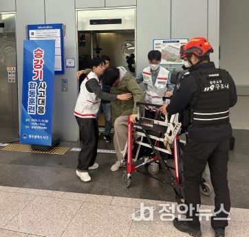 정안뉴스 기자 | 광주광역시 서구는 지난 18일 김대중컨벤션센터에서 승강기 사고대응 실전 합동훈련을 실시했다.