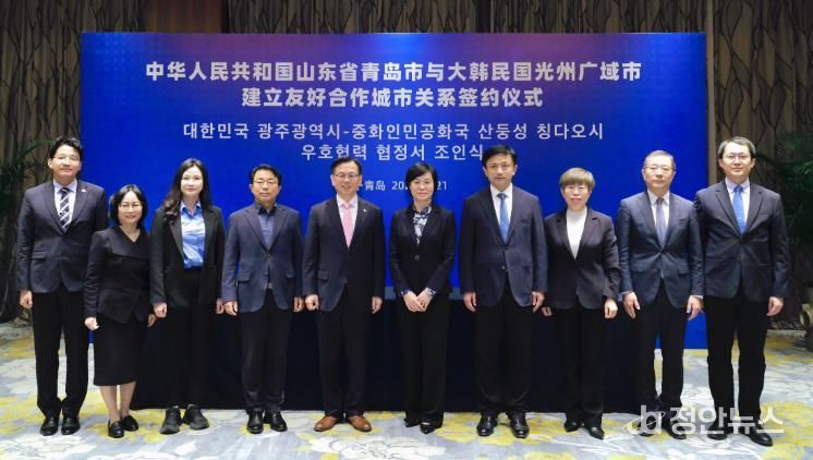 정안뉴스 기자 | 광주광역시와 중국 산둥성 칭다오시가 지난 21일 칭다오시청에서 ‘우호협력도시 협정’을 체결했다.