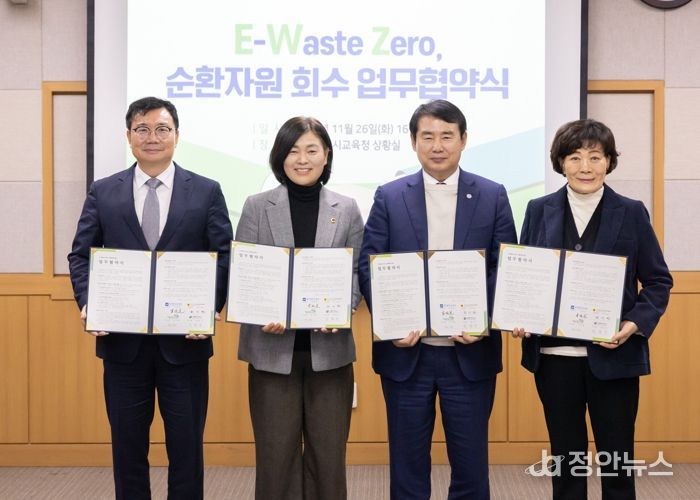 정안뉴스 기자 | 광주시교육청은 지난 26일 광주광역시의회 환경복지위원회, (사)자원순환사회연대, E-순환거버넌스와 ‘E-Waste Zero, 순환자원 회수 업무협약’을 체결했다.